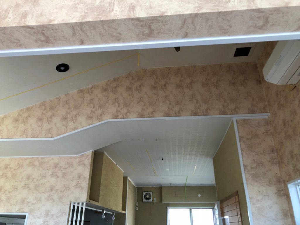 木目が印刷された壁クロスで代用する方法を取り入れました。