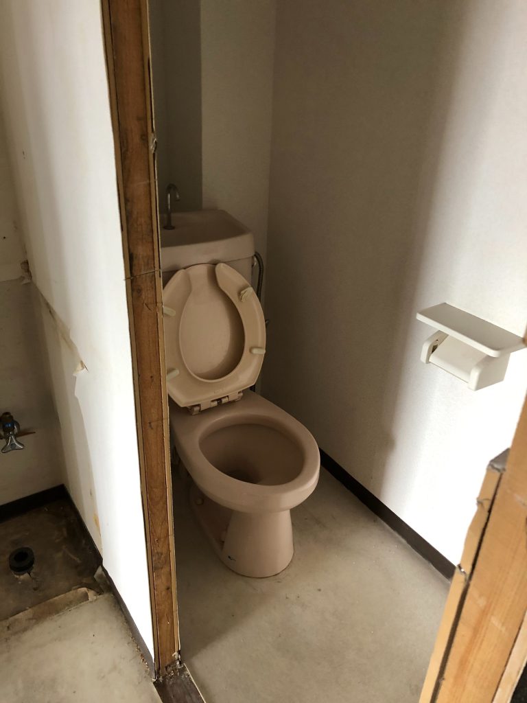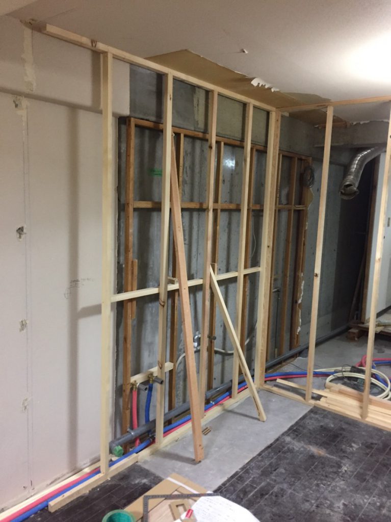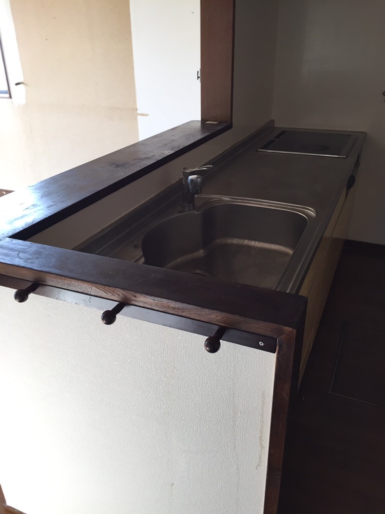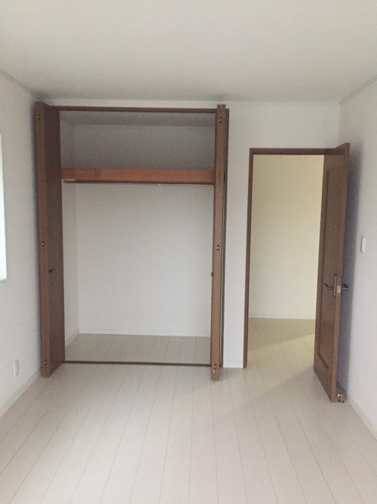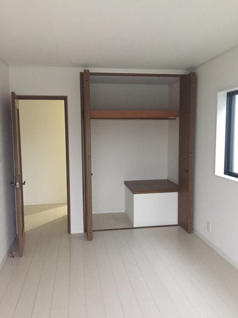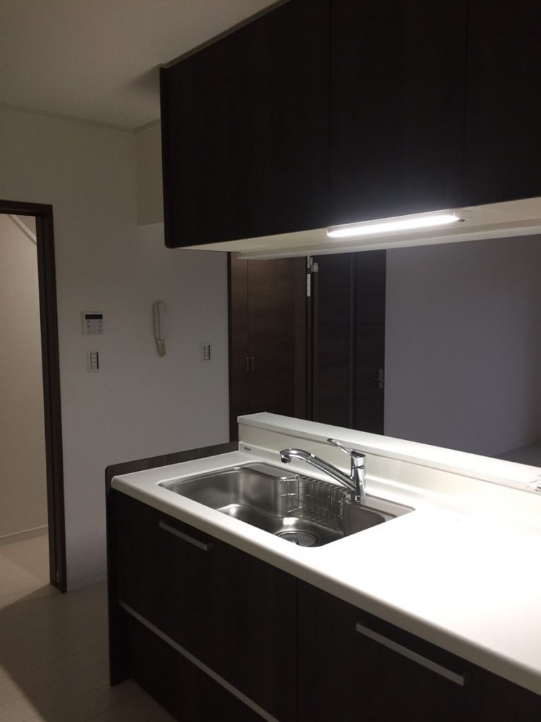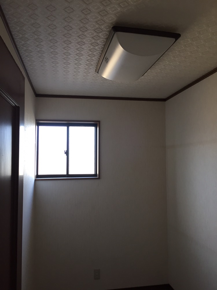 造作してクロスとクッションフロアを貼り、洗面台は取替を行いました。