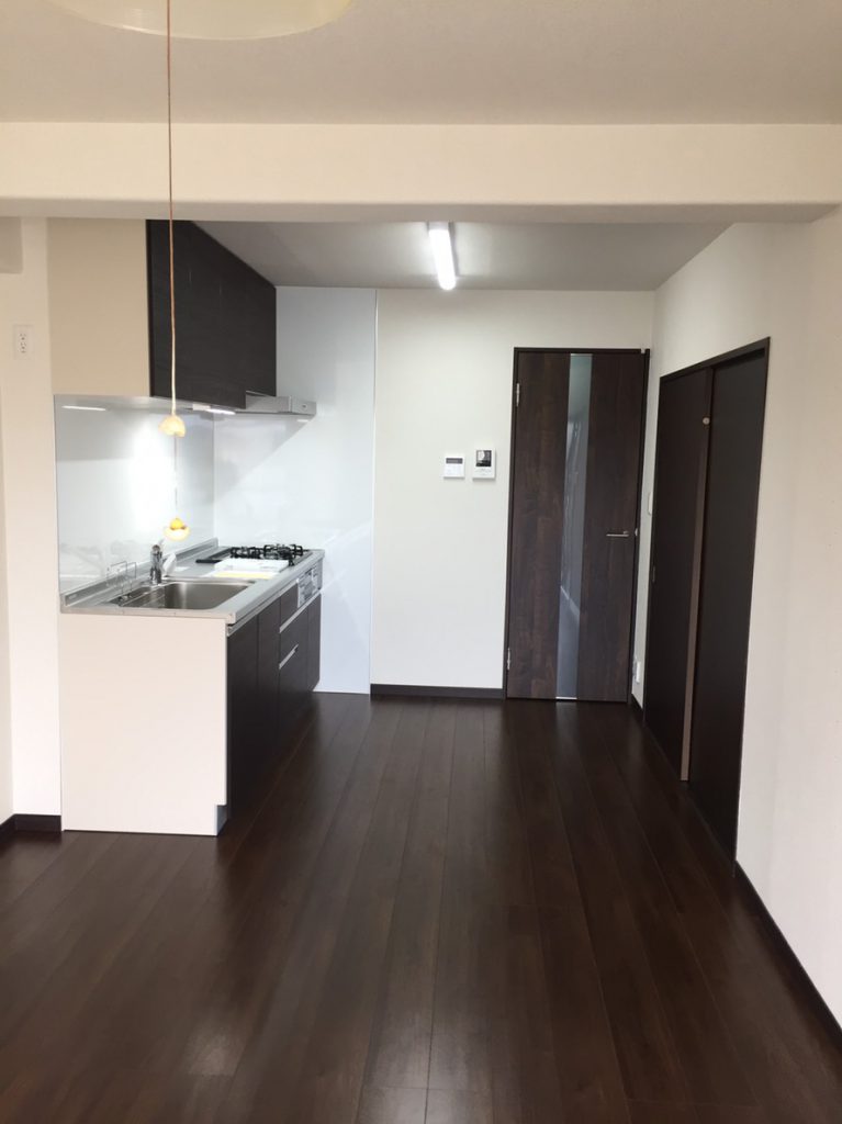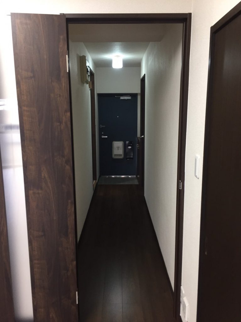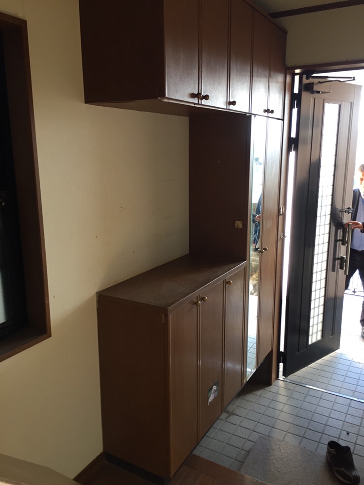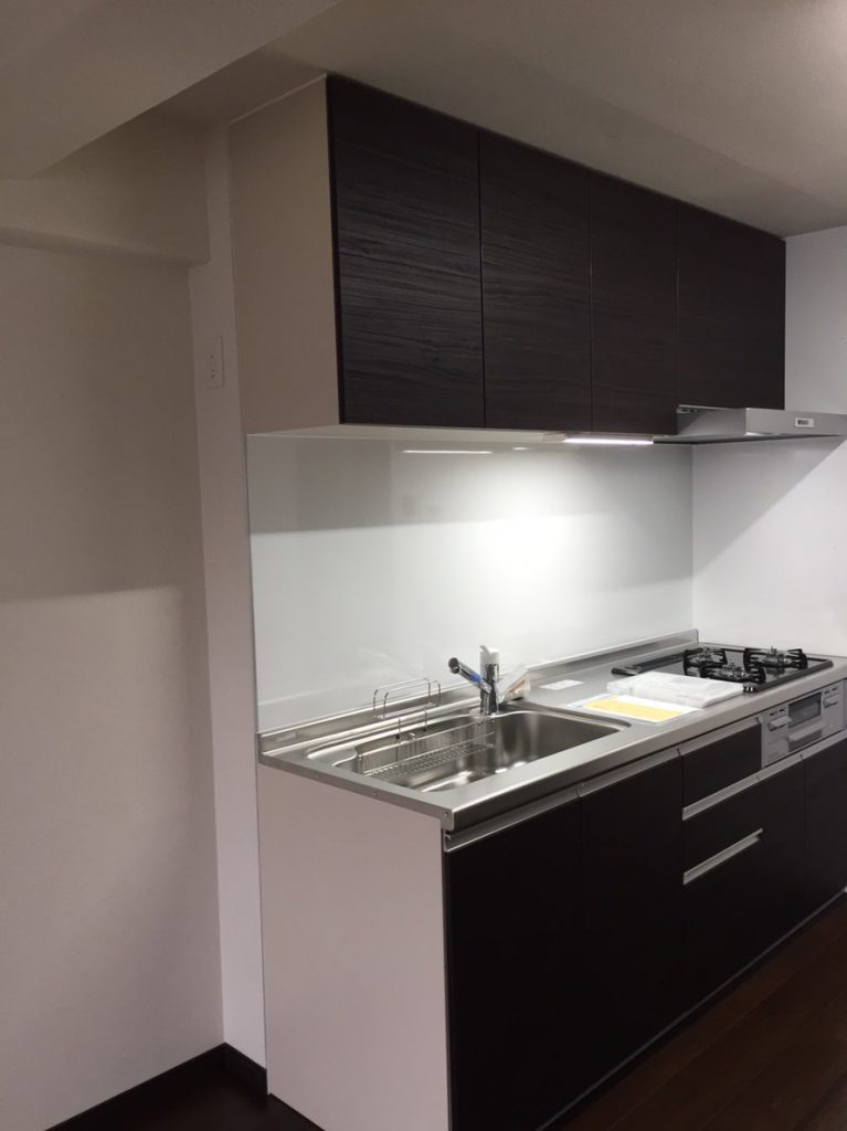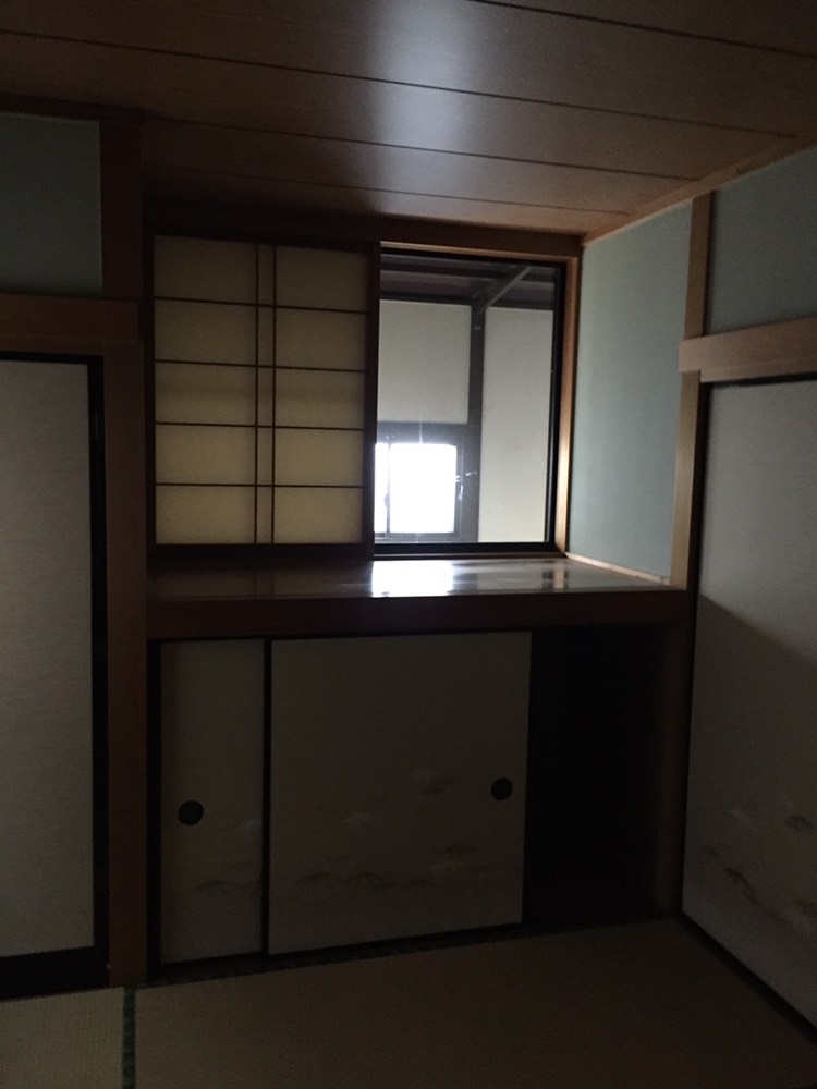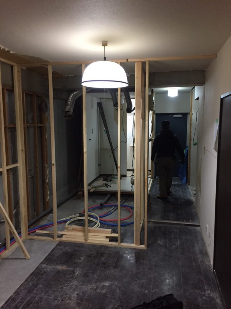 造作してクロスとクッションフロアを貼り、洗面台は取替を行いました。